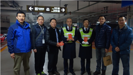 2014年1月31日(大年初一)上午,受罗董事长和官总经理的委托,公司牛副总、陈副总、文副总及秩序部甘经理、设备部张经理来到了大厦看望慰问 了在春节仍然尽职尽责坚守在一线岗位的员工,给大家拜年并致赠红包,将公司的关爱和温暖送到他们身边,感谢值班员工的辛勤付出,祝福他们新春快乐、阖家欢 乐!