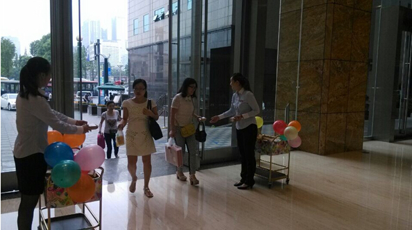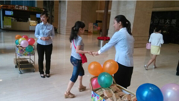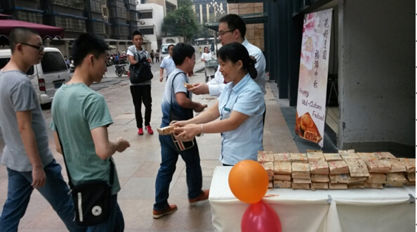 我司于2014年9月5日(中秋节前夕)上班迎宾时段,在大堂、染坊街入口及B2层车场门禁等主要进出通道,同时举办了向大厦租户送节日祝福,赠中秋月饼的慰问活动,受到了众多租户的一致肯定和好评。