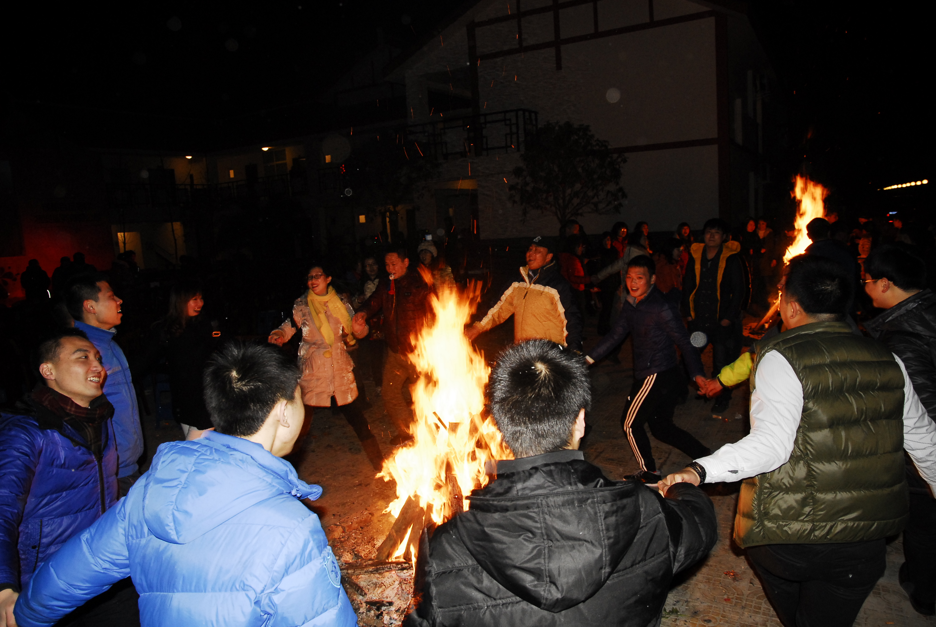 各部门员工围绕篝火跳起了欢快的舞蹈