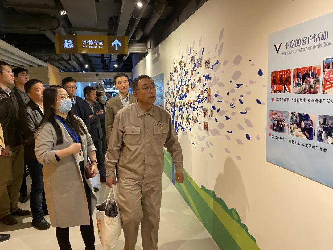▼郭明义副主席参观百扬大厦大堂和B2层照片墙
