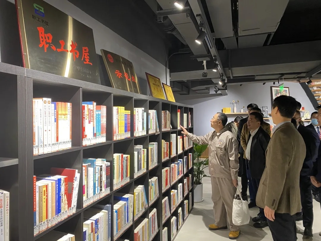 成都百扬实业有限公司工会委员会主席牛荣向郭明义副主席一行介绍了大厦工会的运作情况,并带领其参观了职工之家——百扬书院。郭副主席对百扬书院丰富的藏书、贴心周到的布局设计、井井有条的管理、温馨舒适的环境都给予了很高的评价。