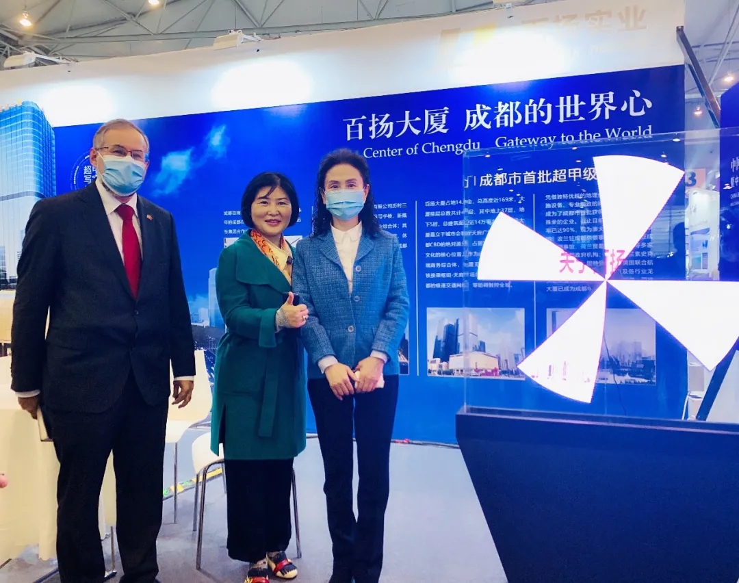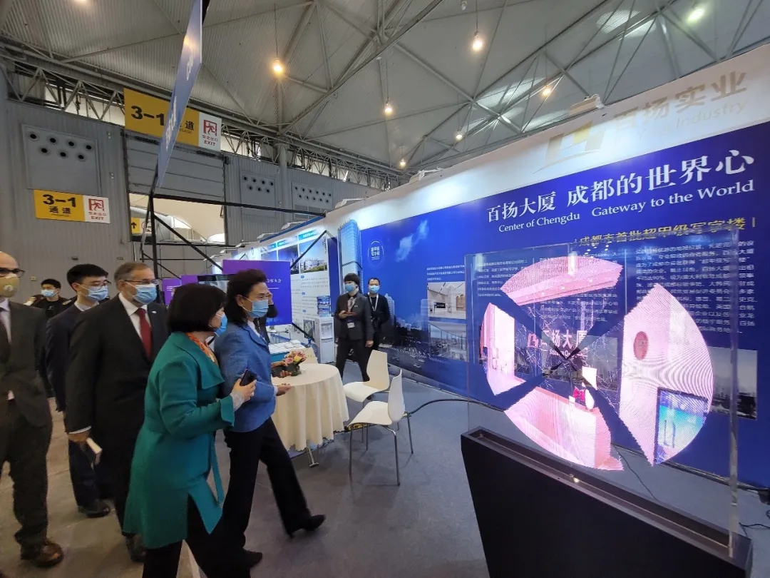 成都百扬实业有限公司作为成都楼宇经济促进会常务副理事长单位,积极响应“以楼聚产 以产兴城”的行业号召,以饱满的热情及创新的展台向四海来宾全方位展示百扬特色。 ▼成都市人民政府副秘书长、办公厅主任廖成珍莅临百扬大厦展台