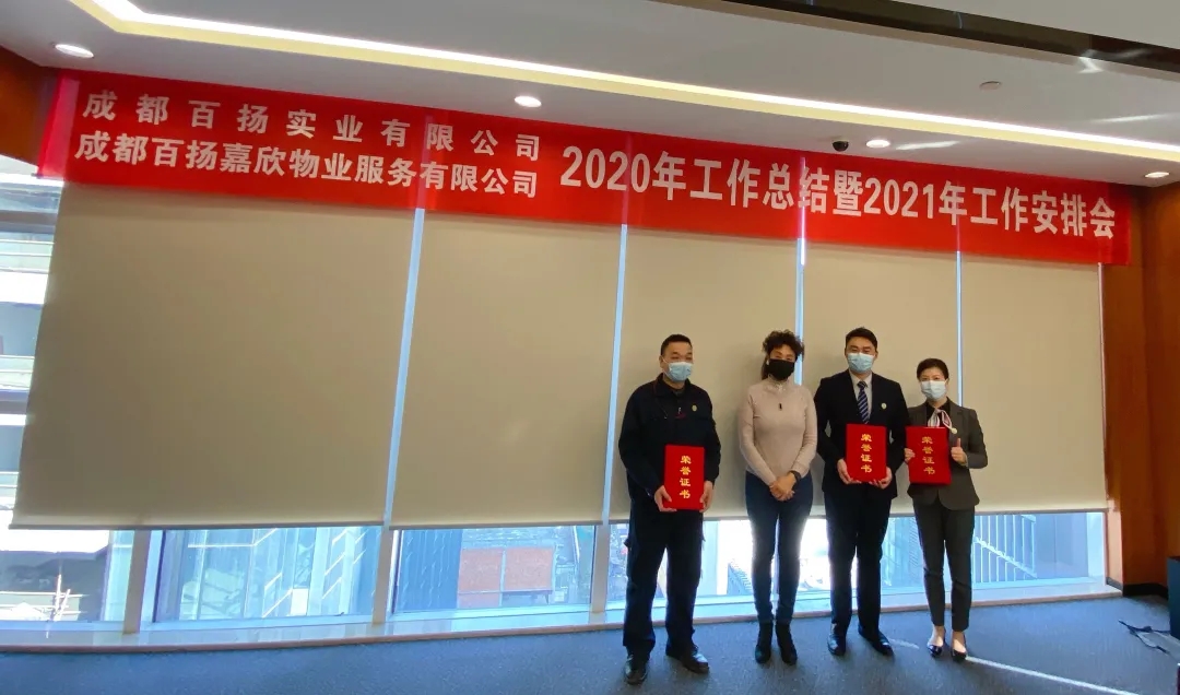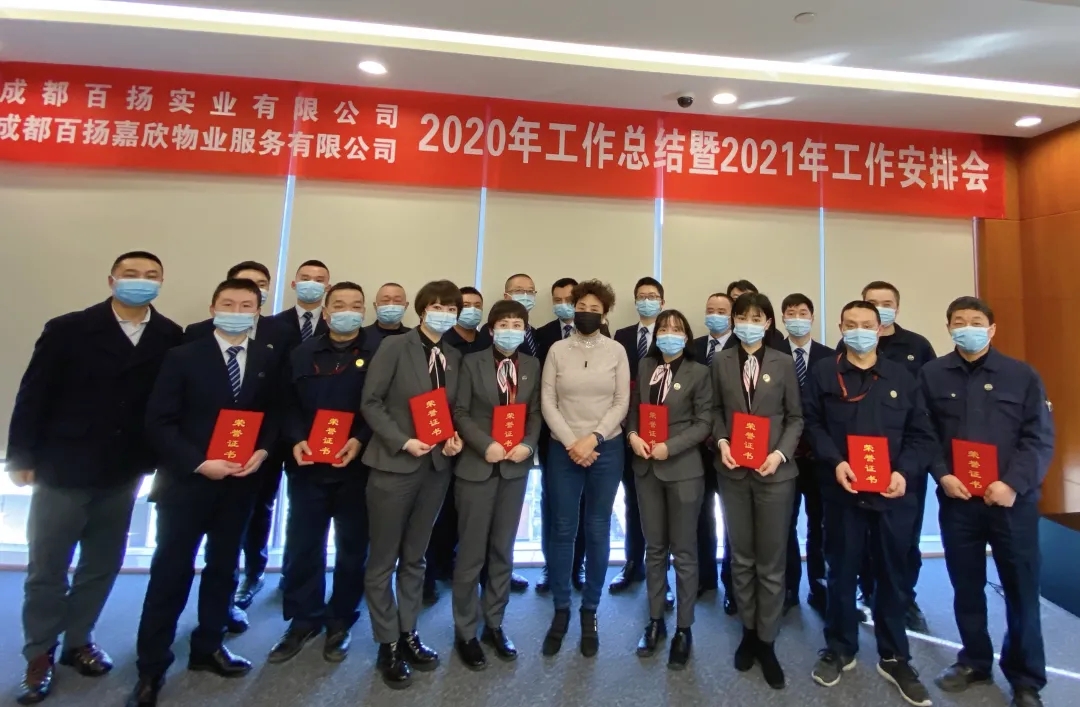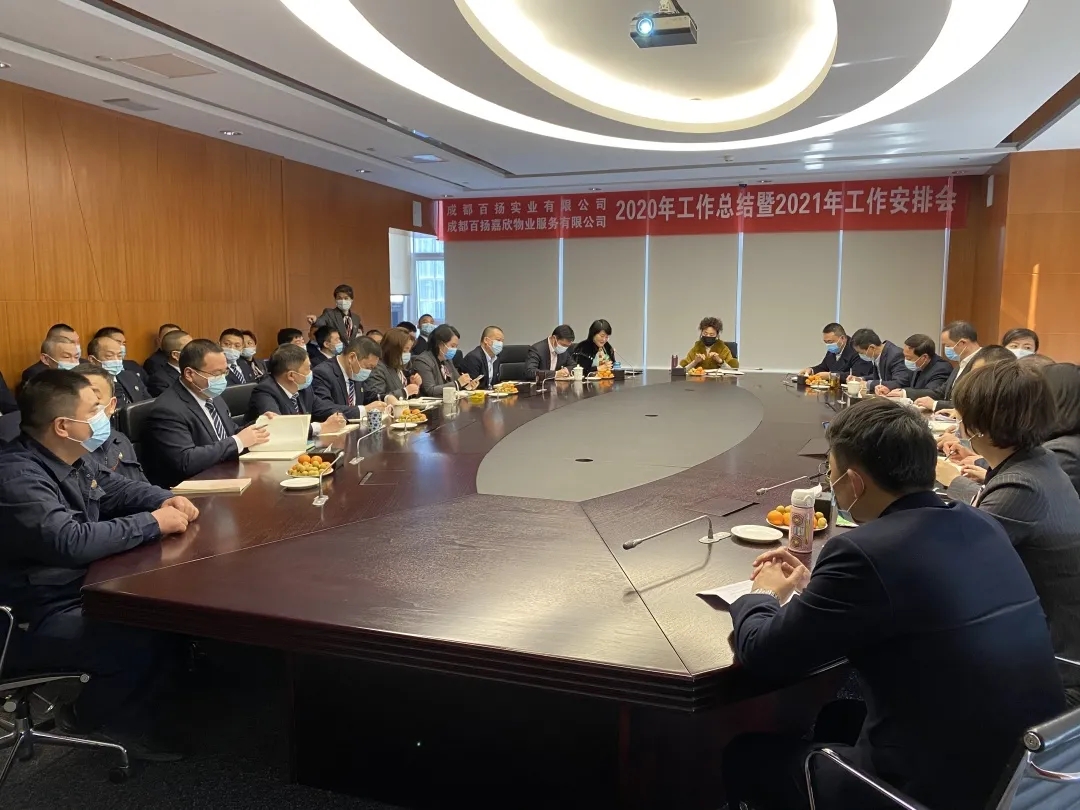 2021年1月12日下午,成都百扬实业有限公司、成都百扬嘉欣物业服务有限公司2020年工作总结暨2021年工作安排会在百扬大厦13楼国际会议中心召开。