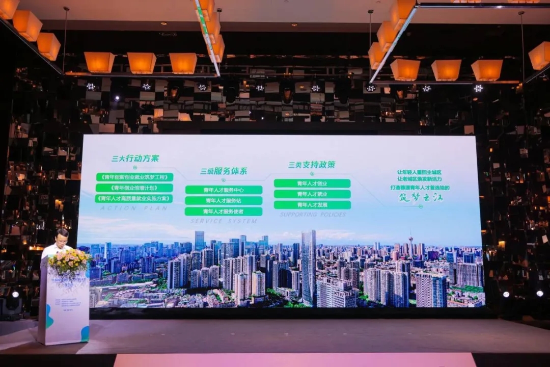 会议发布了锦江青年人才服务计划:通过《青年创新创业就业筑梦工程》、《青年创业倍增计划》、《青年人才高质量就业实施方案》三大行动方案;构建青年人才服务中心、服务站、服务使者三级服务体系:出台青年人才创业、就业、发展三类支持政策,让年轻人重回主城区,让老城区焕发新活力,打造蓉漂青年人才首选地的“筑梦之江”。 作为锦江区重点楼宇的代表,百扬大厦非常荣幸获得了”锦江区青年人才服务站“的授牌,将打通人才服务的“最后一公里”,以面对面交流,一对一办理,为蓉漂青年提供家门口“零距离”服务。 锦江区是中国年度最佳雇主评审委员会评选的中西部 “最佳引才”城区,作为锦江区重点楼宇代表的百扬大厦,将继续为打造“近悦远来”的人才生态,为使锦江成为优秀青年人才的向往之地、集聚之地、创业之地奉献自己的力量。