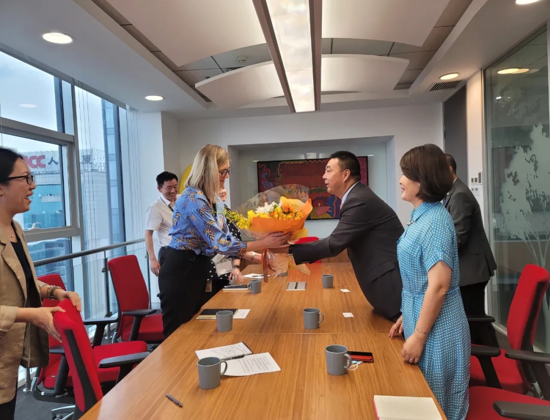 百扬大厦总经理官维先生首先对倪瑞兰女士的到任表示热烈的欢迎。同时,感谢总领事馆以及领事馆工作人员一直以来对大厦工作的关心与支持,细数了百扬与澳领馆长期优质和谐的合作关系,并表示百扬大厦将不断提高服务品质来更好地满足百扬大厦客户的需要。 大家在愉快的氛围中结束了此次交谈,进行了合影留念。