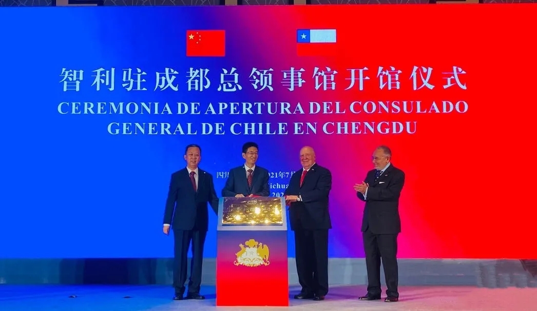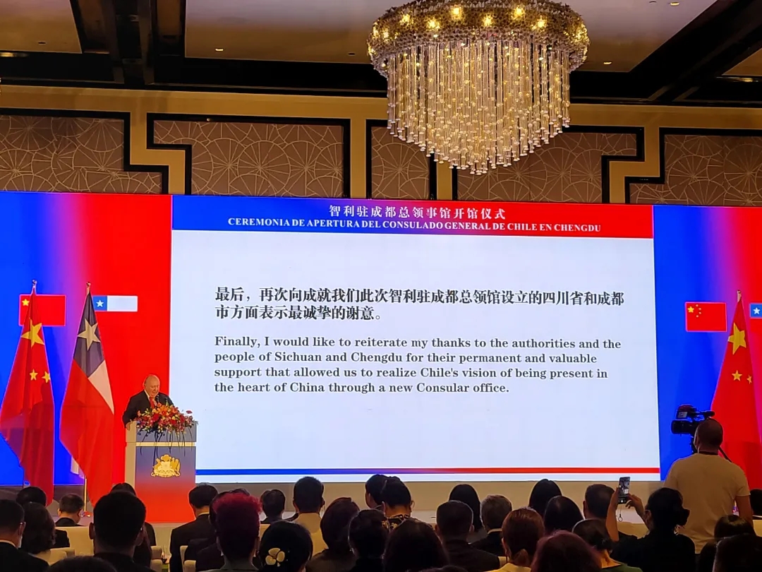 智利是四川在拉美重要的经贸合作与人文交流国家之一。2020年10月,智利获批在成都设立总领事馆,是首个在四川省开设领馆的拉美国家,领馆选址百扬大厦。此次领馆的设立对深化四川与拉美和加勒比等西语世界国家合作将起到重要的示范作用。在开馆仪式现场,也来了多家智利企业进行摆展,展示了许多智利的特产,让大家更加的了解智利。